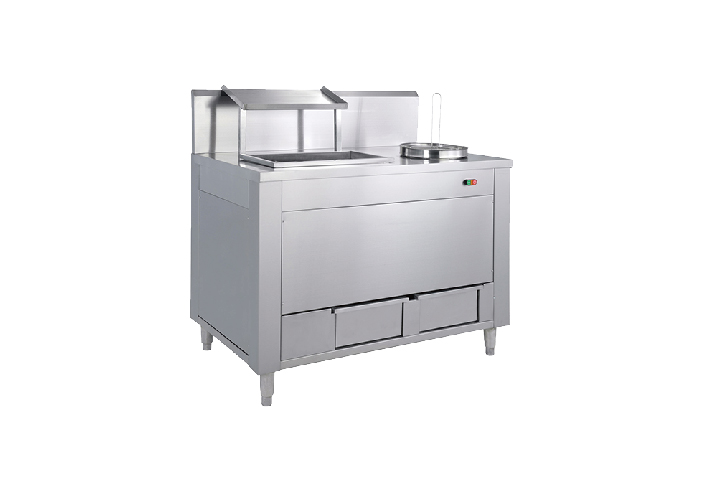 電動裹粉臺是西式廚房和特色炸雞店的設(shè)備,配套炸雞爐,油炸鍋使用,能夠較快、均勻的裹粉,使食物的口感、色澤更佳。立式設(shè)計,左側(cè)裹粉池右側(cè)醬料桶,實現(xiàn)了裹粉的快速方便,省時衛(wèi)生,大大提升了炸制食品的工作效率。該產(chǎn)品適用于飯店、小吃店、廚房,餐館等場合,該產(chǎn)品使用304不銹鋼制作,易清洗,不易生銹。